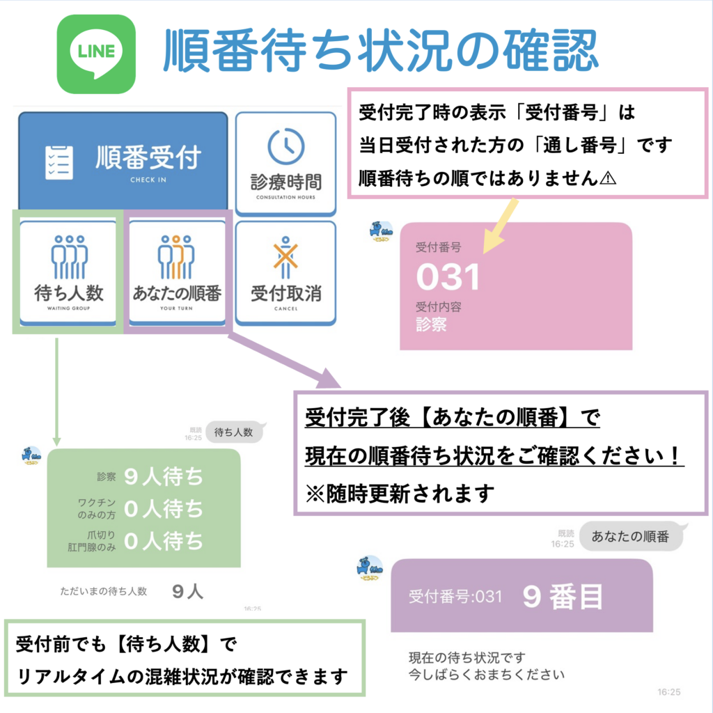 【手術や検査予約済の方、注射の定期通院の方】は当日のLINE受付は不要です。